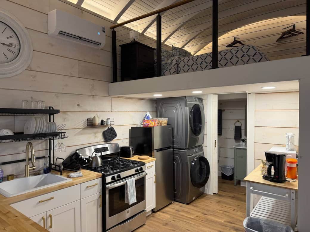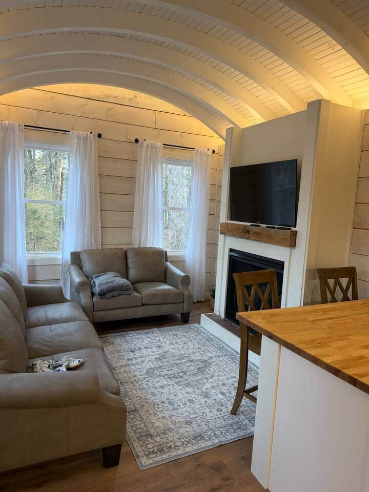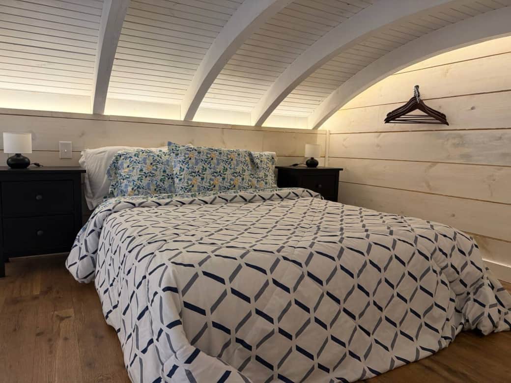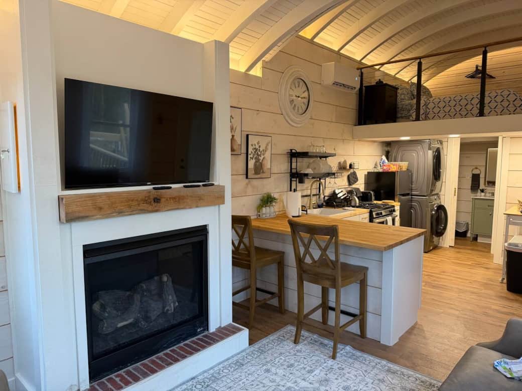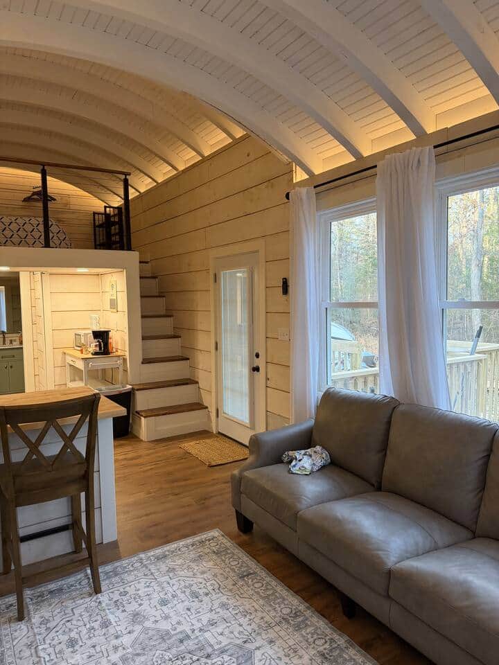 Cozy rustic tiny house nestled in the forest behind our home. Enjoy a private wooded setting, warm wood interiors, and an arched ceiling that opens the space. Climb to the loft for a comfy queen bed and peaceful views of the trees. A simple, quiet retreat perfect for unwinding in nature.