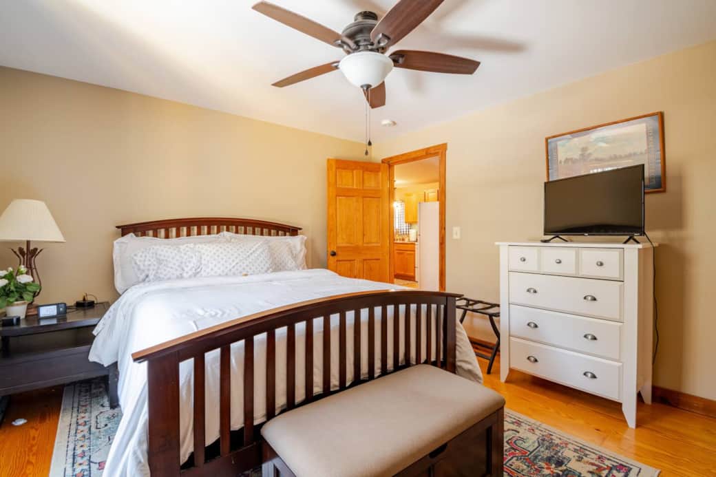 ✔ Sleeps up to 4 (queen bed + optional queen mattress)